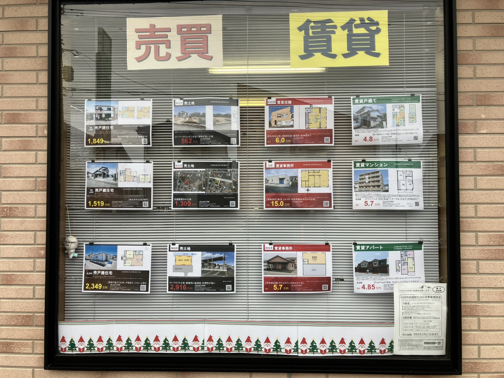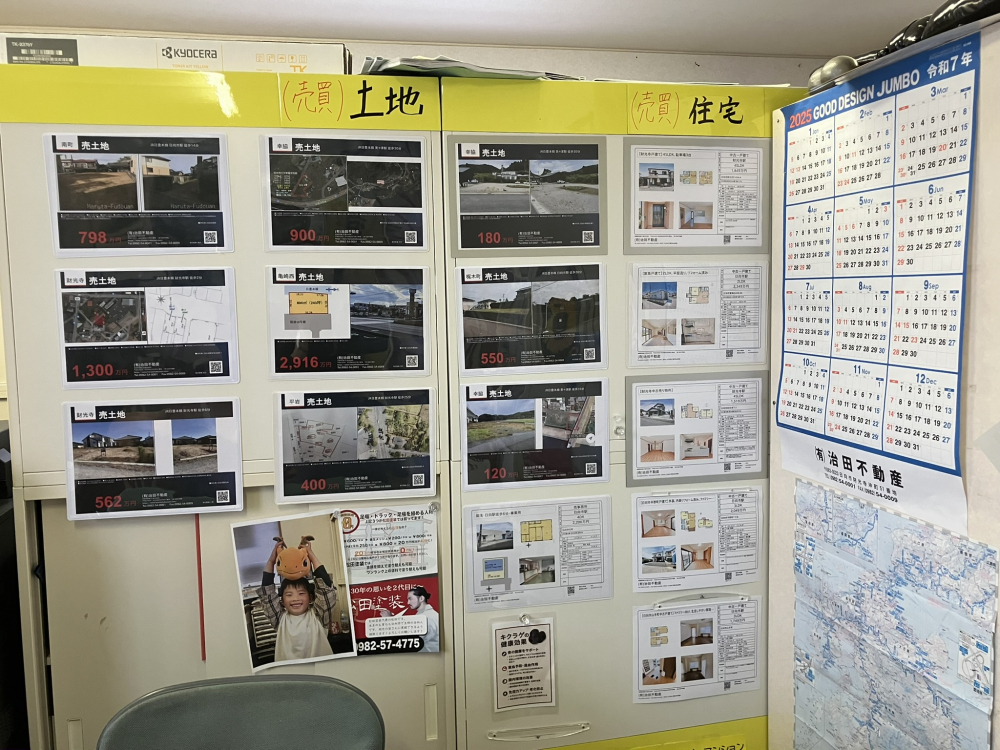 店頭、店内に【紙】の情報を多数掲載中。ぜひお気軽にご来店くださいませ!|日向市、門川町、延岡市の戸建て・土地のことなら治田不動産へお任せください。